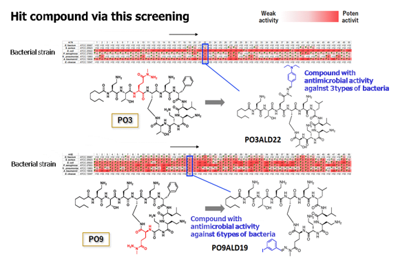 For polymyxin B, a broad substrate range was discovered through the reaction in Process 2. From 50 derivatives, the synthesis and evaluation of the derivatives were carried out with a scan of only a few milligrams using in situ screening.