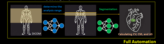 - Current Stage: The calcium amount was quantified and the Agatston score was calculated from body CT data, achieving a high correlation with the results from coronary artery CT calcium scans.