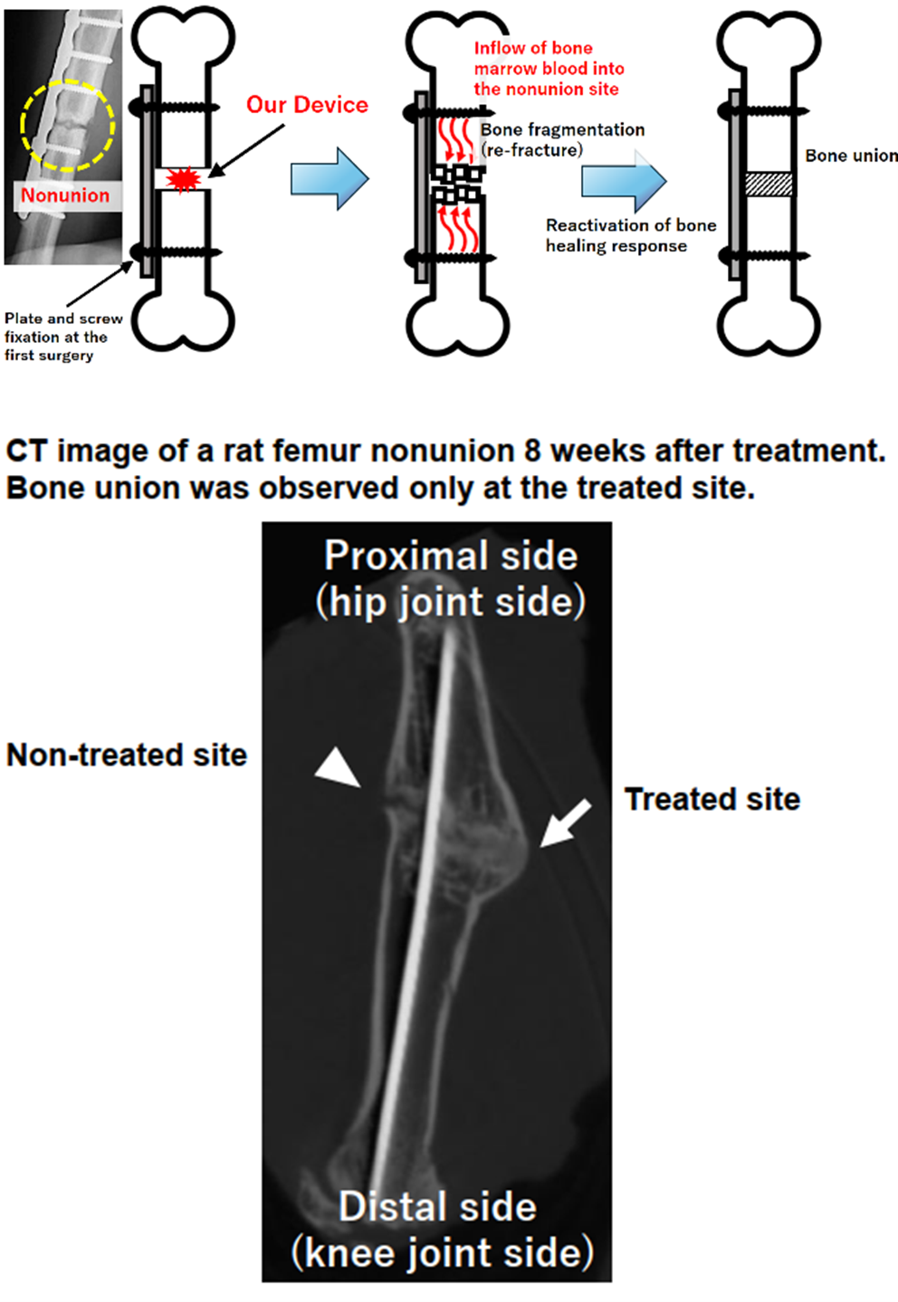 This device is a novel medical device for the surgical treatment of nonunion, enabling bone union to be achieved with less invasiveness than conventional techniques.
